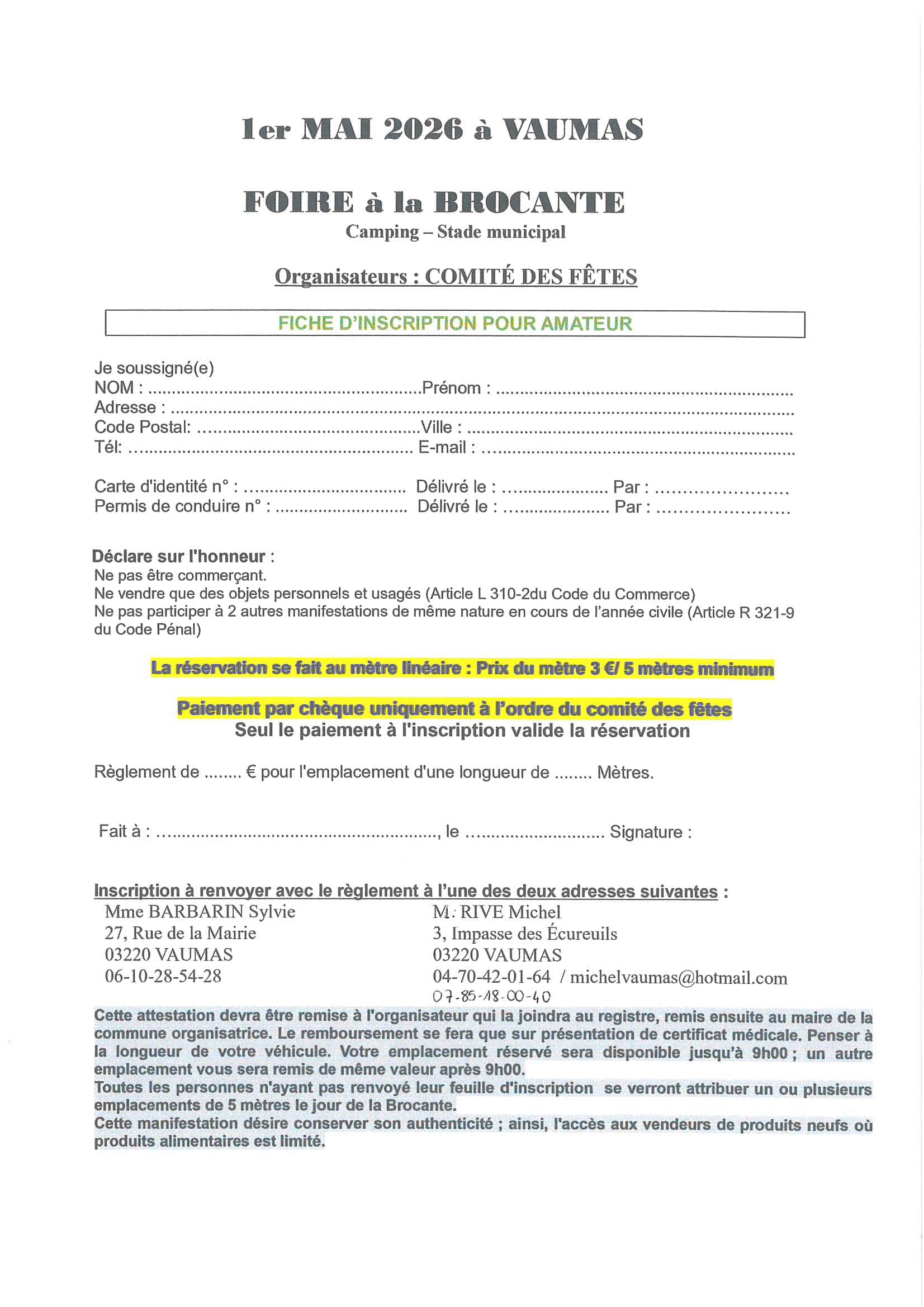 Inscription brocante 1er mai amateur