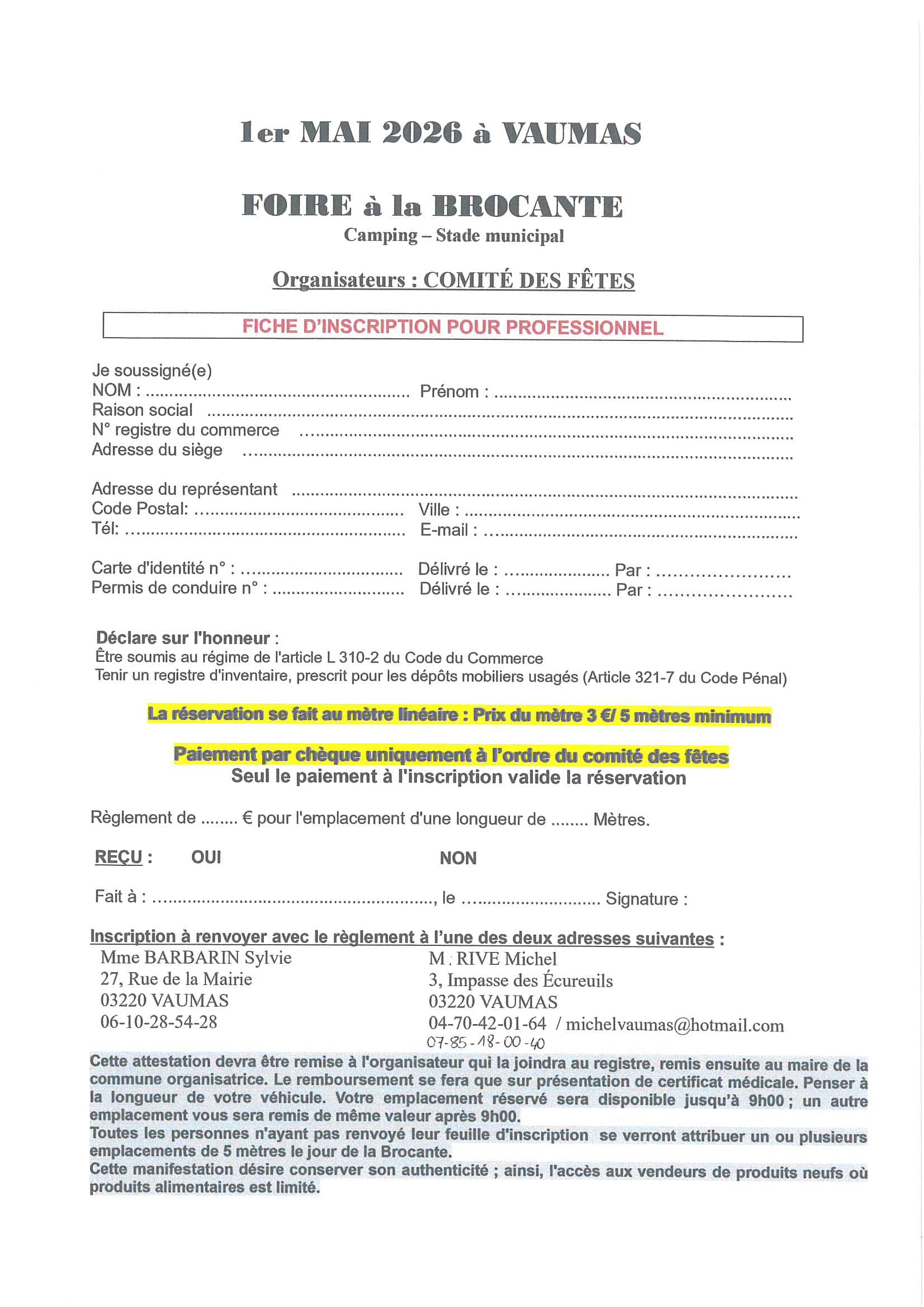 Inscription brocante 1er mai professionnel